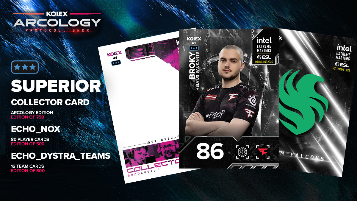 Kolex trading cards each have a unique serial/mint number and QR code unlocking the identical digital twin. Each collectible can be uniquely tracked, viewed in your digital library and be traded or sold on the web and mobile applications!